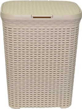 Корзина ВиолетПласт для белья 40 л с крышкой Ротанг (латте)
