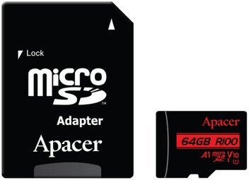 Карта памяти Apacer microSDXC AP64GMCSX10UB-R 64GB (с адаптером)