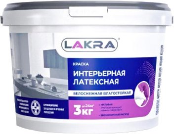Краска Лакра Латексная интерьерная влагостойкая матовая 3 кг (белоснежный)